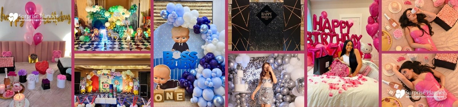 At Surprise Planner, we turn birthday decoration ideas and anniversary decoration ideas into surprise planner services that celebrate you. Let us help you create your perfect narrative, one balloon, one light, and one flower at a time.