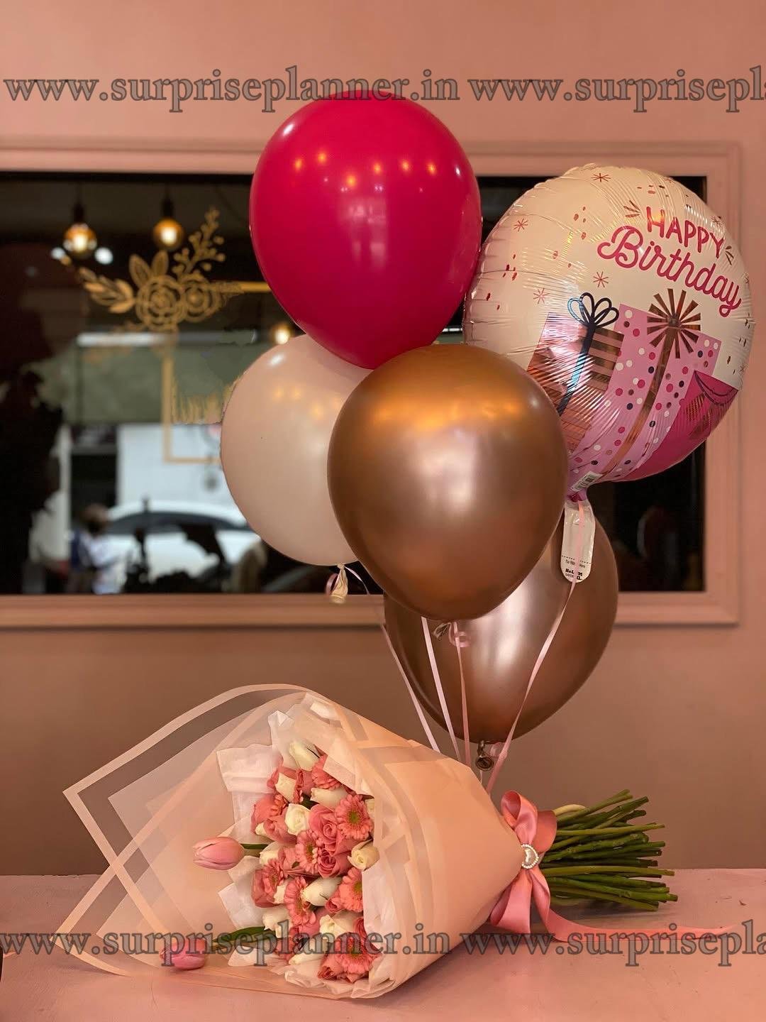 Make their birthday extra special with our delightful "Blush & Joy" Bundle, combining the timeless elegance of fresh flowers with the festive fun of balloons! This thoughtful package is designed to bring smiles and celebrate their special day in style.