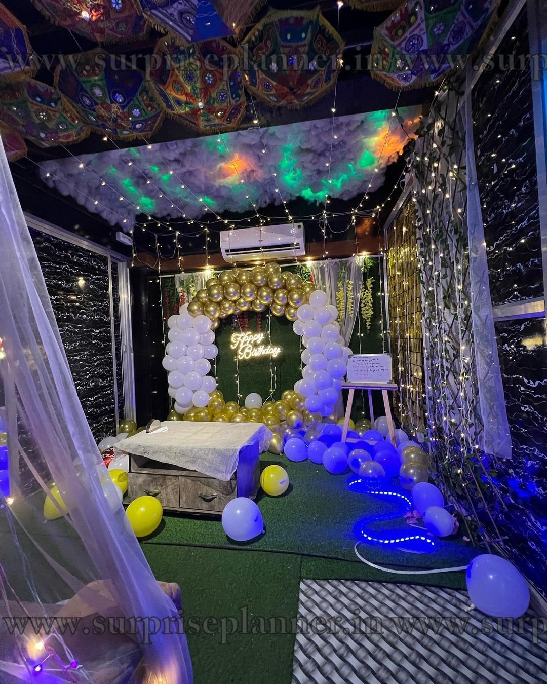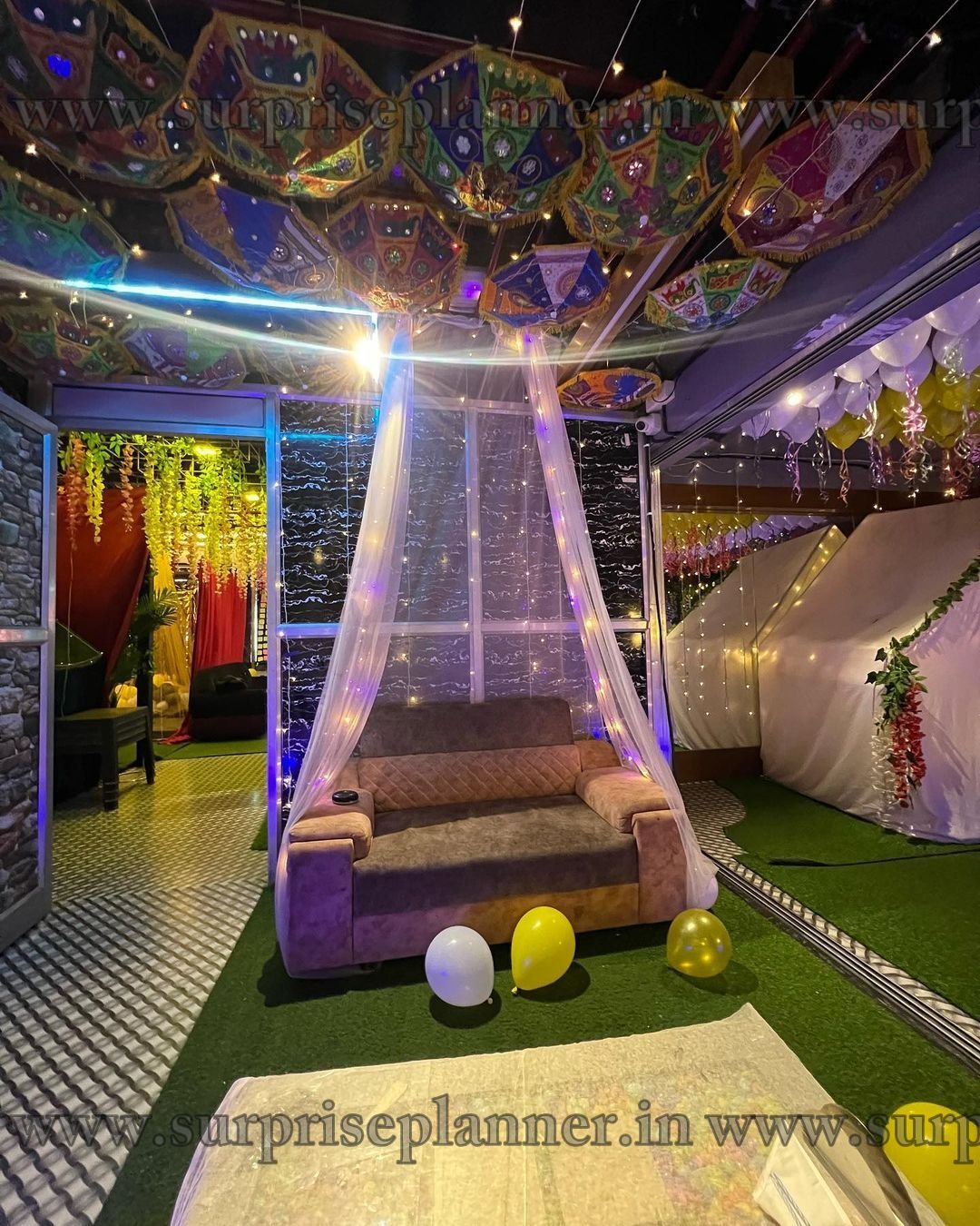 Celebration area with Decoration Setup at Ahmedabad is ideal for every event, including birthdays, anniversaries, and business functions. These designs use exquisite balloons, bright floral arrangements, and creative lighting to create a celebratory environment. The venue is created with adjustable themes, allowing you to personalize the décor to your event's exact requirements. Every element, from the dining settings to the external decoration, has been painstakingly preserved to ensure a unique experience. Ideal for both small and big events, our festival venue creates a lively environment by blending exquisite aesthetics with a straightforward event experience, guaranteeing that your special day is really unforgettable.