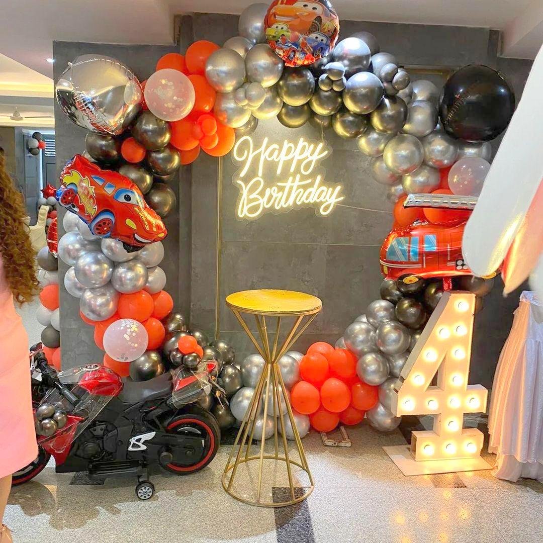 Enhance your celebration with this beautiful Chrome Balloon Ring Decoration. This elegant design incorporates a large circular balloon arch made of high chrome balloons in elegant metallic tones including gold, silver, rose gold and bronze The balloons' shiny surface gives a classy and elegant touch, ideal for weddings, anniversaries, birthdays and business occasions. Depending on your needs, rings can be made more appropriate with floral decorations, LED lighting, or themed accessories. Our chrome balloon ring decor is perfect as a photo backdrop or event centerpiece, ensuring a memorable and visually appealing celebration. Impress guests on your big day with this sophisticated and stylish accessory.