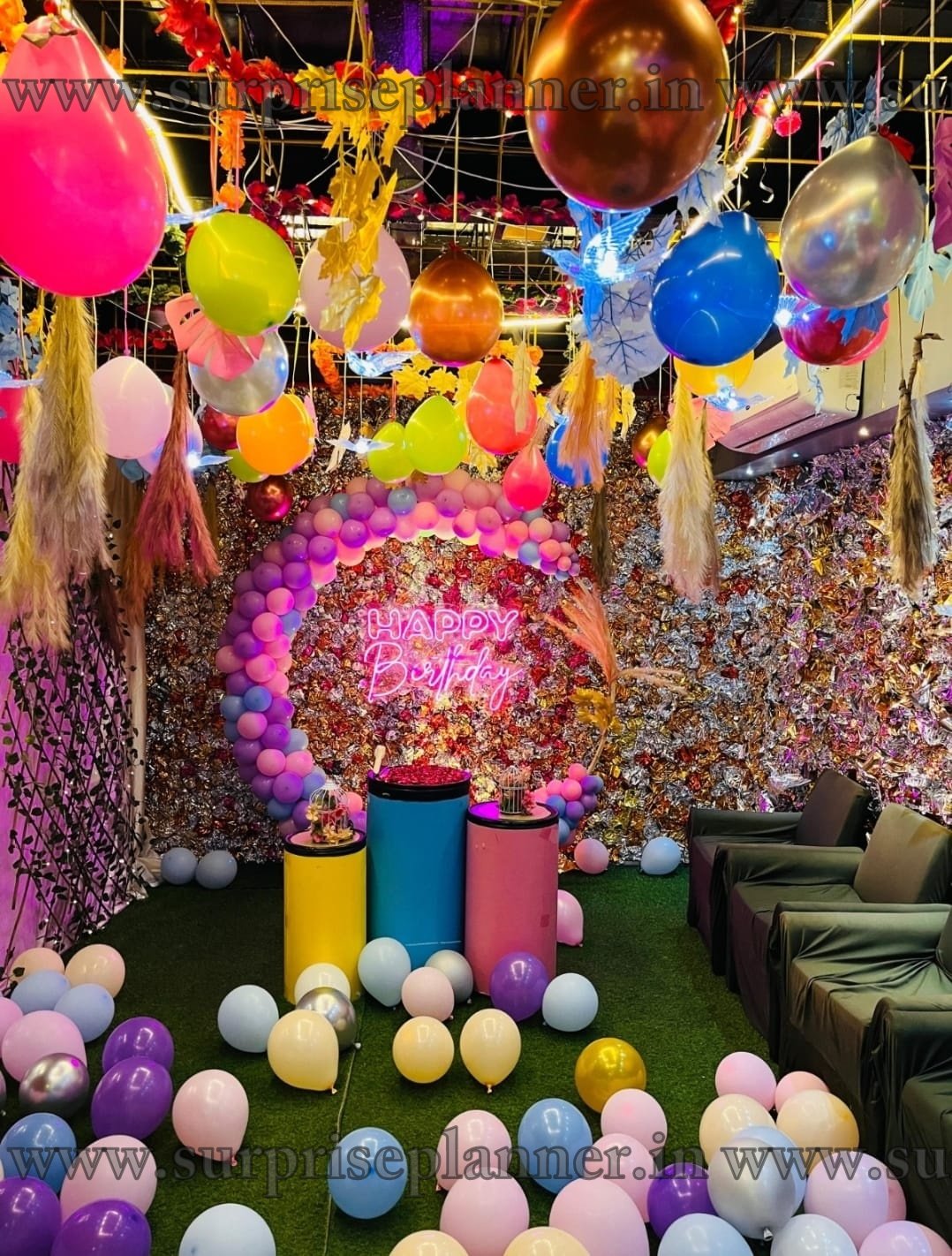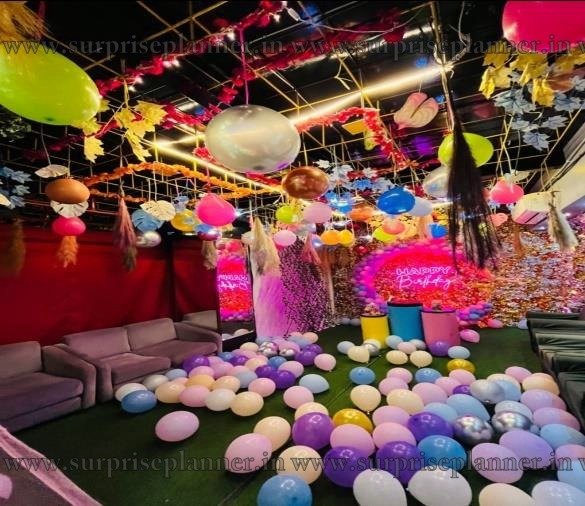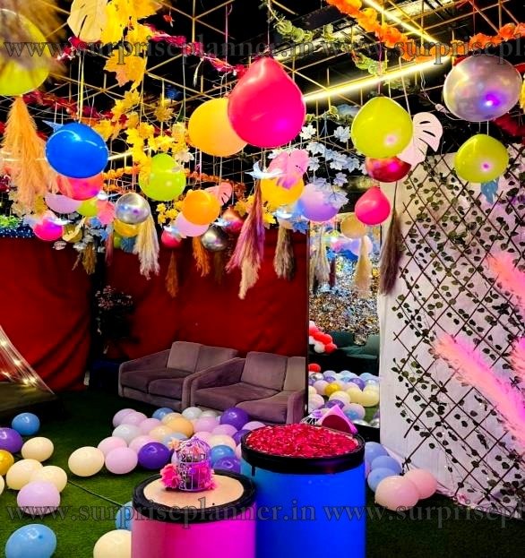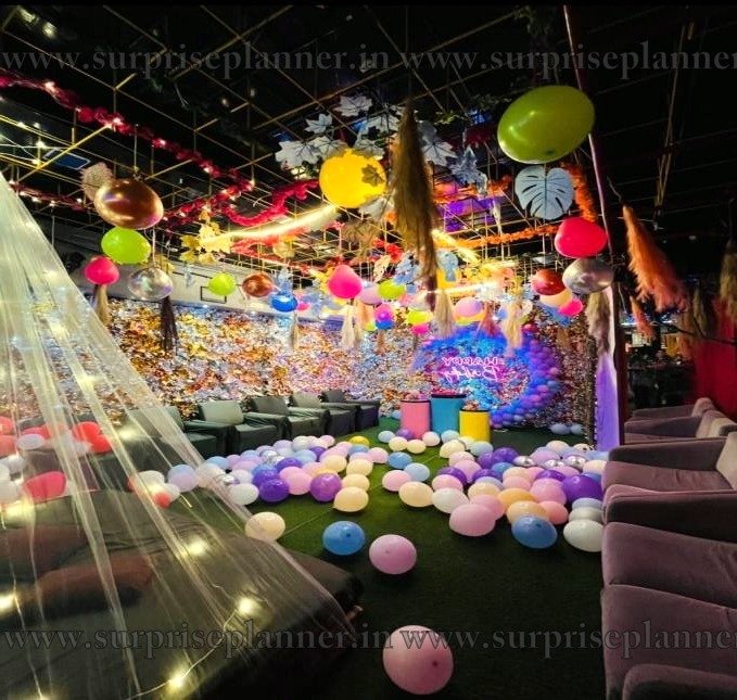 Create a memorable romantic experience with our Couple Celebration Setup in Ahmedabad. This cozy atmosphere, designed to evoke romance and pleasure, is ideal for anniversaries, date evenings, and other special events. The arrangement is beautifully decorated with fairy lights, candles, and rose petals, creating a lovely environment. Comfortable sitting with cushions and blankets offers comfort, while personal touches such as nameplates and photo backdrops Enjoy a luxurious private dining experience complete with delectable cuisine, beverages, and music while remaining tranquil and serene. With this stunning arrangement, you can celebrate love in style and make memories that last a lifetime.