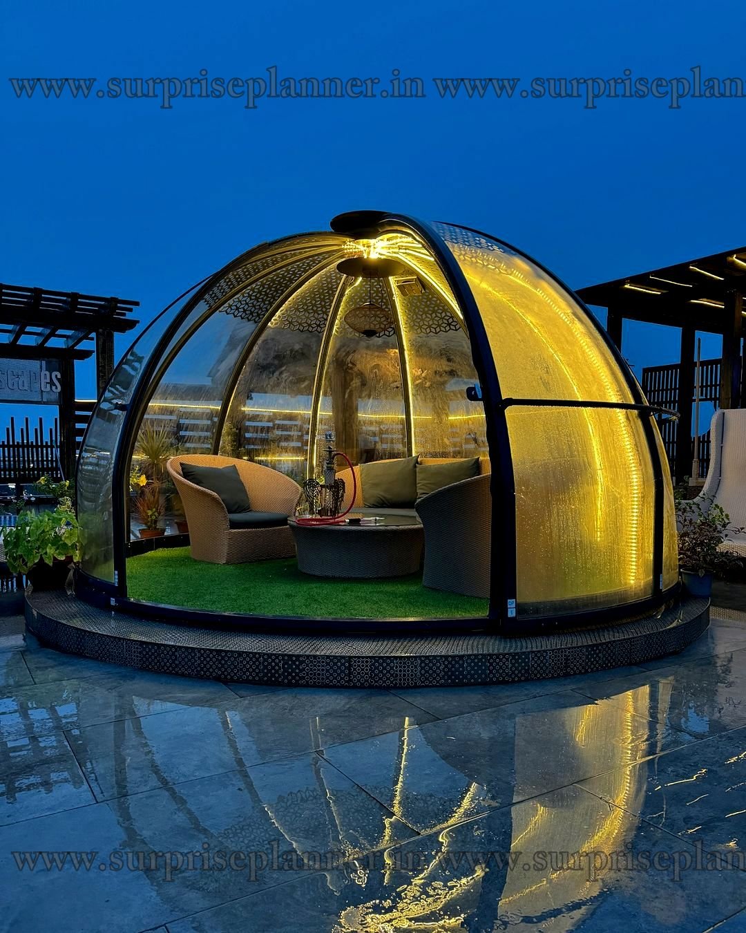 Looking for the finest dome venue for couples in Kolkata? Look no further. Our Glass Dom Package is ideal for celebrating a birthday, wedding proposal, or anniversary. Every aspect, from breathtaking decor to customized services, is meticulously designed to make each encounter unique.