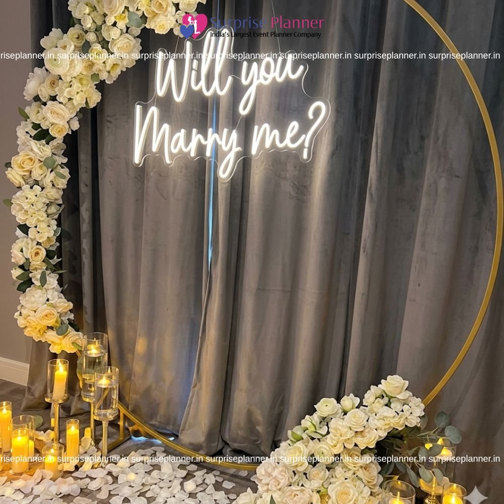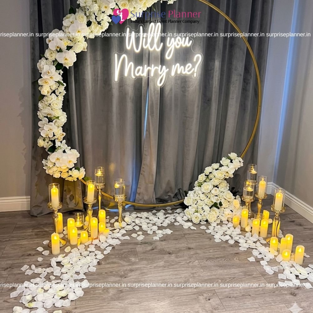Make a stunning idea with our "Will You Marry Me" flower ring adornment. This fascinating setting comprises a magnificent ring-shaped arrangement made of fresh, vivid flowers in a harmonized color palette. The flower ring gracefully spells "Will You Marry Me," presenting a romantic and custom designed contact for your idea. This décor is good for each indoor and outdoor settings, with impressive fairy lighting and lush foliage growing a compelling and intimate temper. Our flower ring adornment is right for making your notion particular, combining beauty and elegance to set the scene for one of the maximum giant occasions to your life.