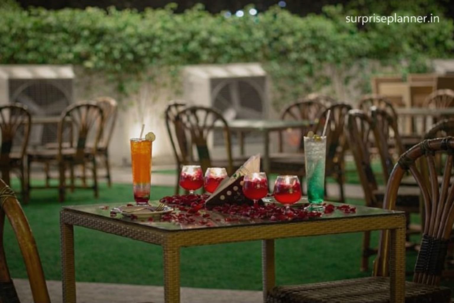 Experience love in its most elegant form with our Garden of Romance – Valentine’s Day Candlelight Dinner. Set in a serene open-air garden, this romantic dining setup features a beautifully decorated private table adorned with rose petals, candles, and refreshing mocktails. Surrounded by lush greenery and soft ambient lighting, the setting creates a calm yet intimate atmosphere—ideal for couples who prefer subtle luxury over extravagance. Whether you’re celebrating Valentine’s Day, planning a surprise date, or marking a special milestone, this garden candlelight dinner offers the perfect blend of comfort, romance, and privacy.