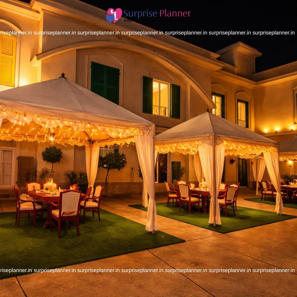 Step into a world of royal romance with our luxury fountain-side cabana candlelight dinner at Hotel Umrao. This exclusive experience is designed for couples who desire privacy, elegance, and a magical ambiance in the heart of Delhi.