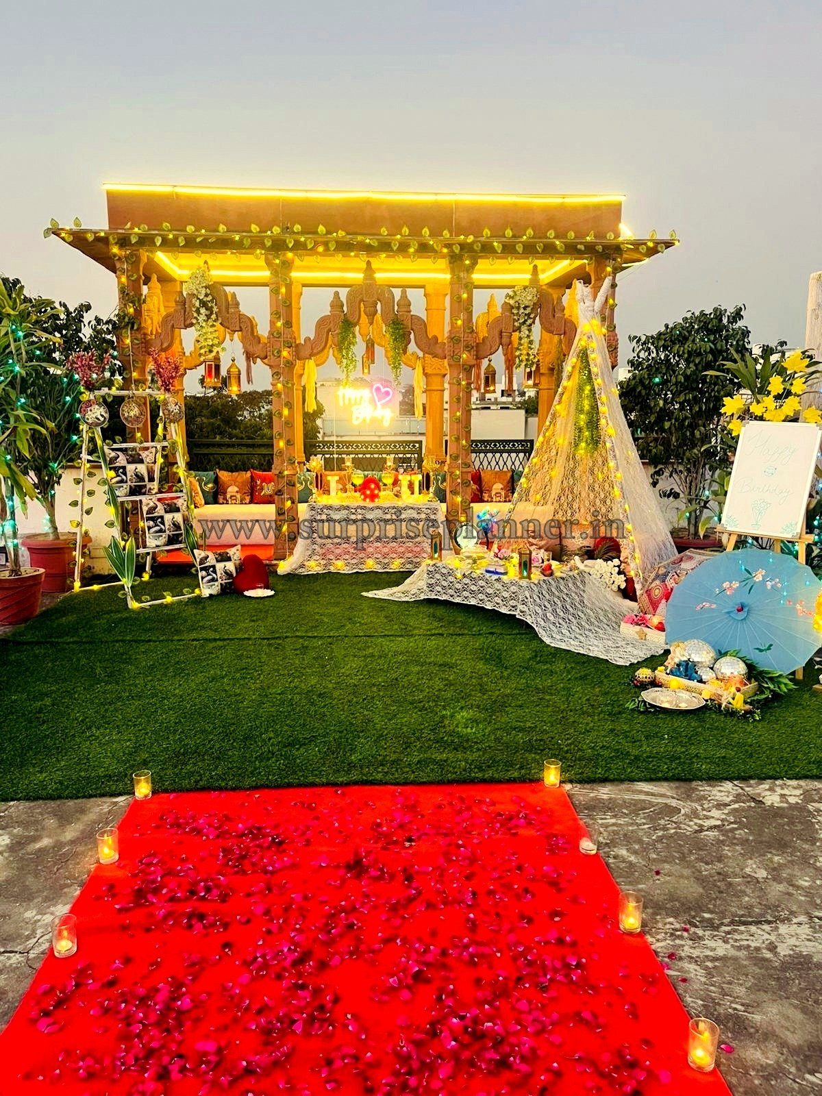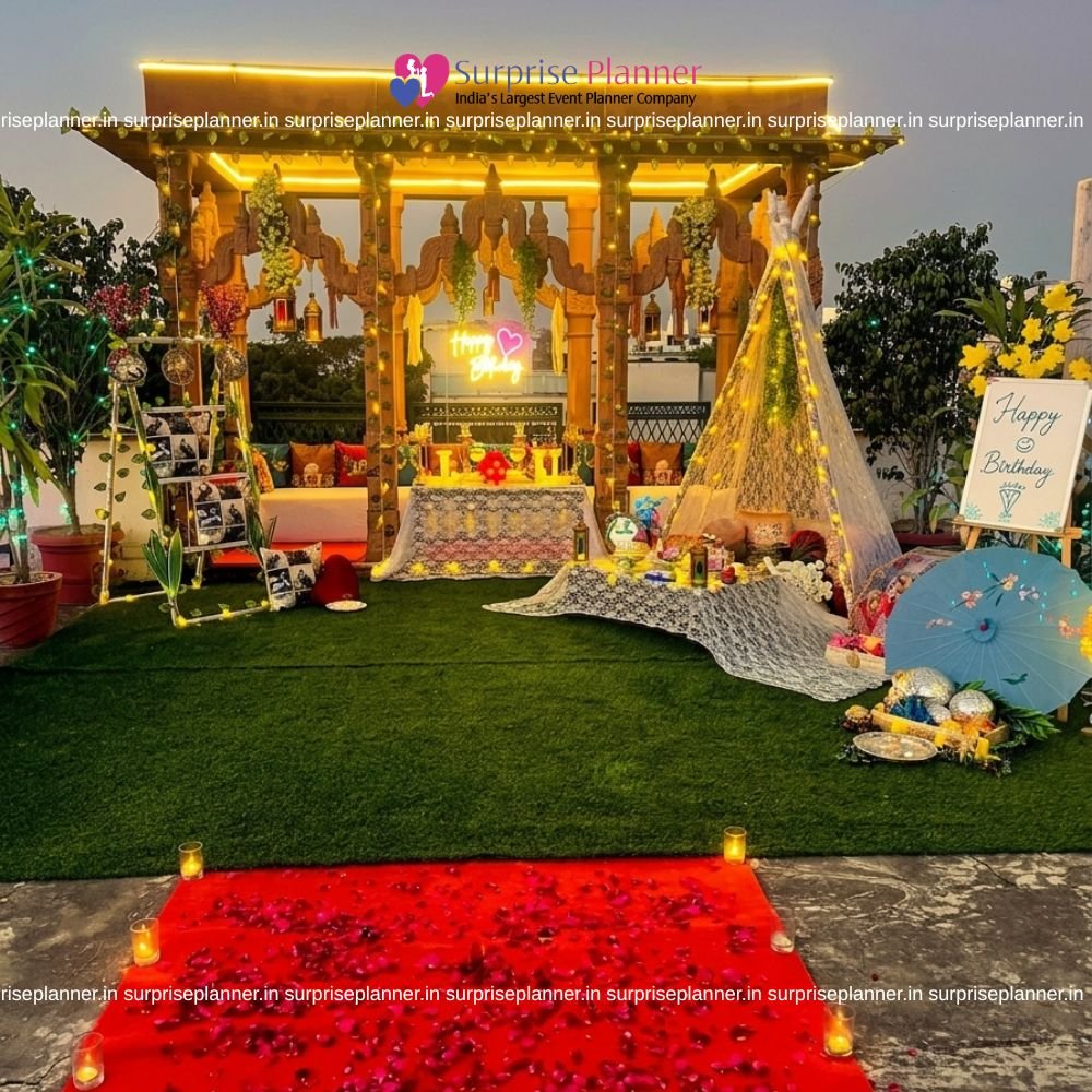 Perfect for marriage proposals, romantic birthday surprises, pre-anniversary celebrations, or couple date nights, this rooftop décor promises exclusivity, privacy, and a grand emotional impact. Surprise Planner curates every detail to turn your special day into a once-in-a-lifetime memory.