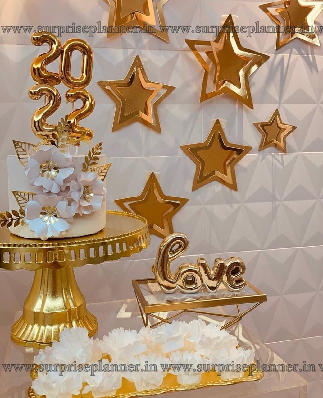 The Half Arch New Year Balloon Decoration is the ideal method to add style to your New Year's party and boost your celebrations. With a half arch arrangement that makes it easy to place on walls, doors, or entryways, this arch adds a trendy and festive ambiance to any location. It features a stunning arrangement of premium balloons in a mix of metallic gold, silver, and black. It adds a festive and glitzy vibe to any event and makes a striking backdrop for pictures and memories, making it ideal for New Year's Eve. This stylish balloon arch will add a memorable touch to any party!