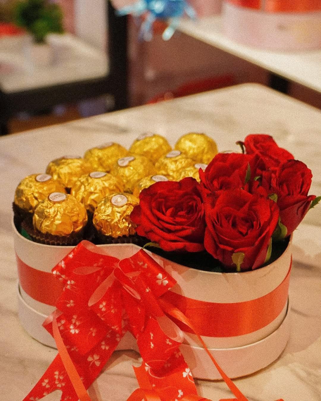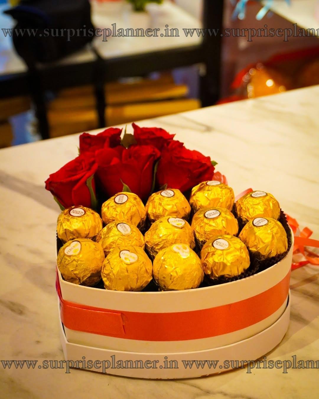 Heart-Shaped Roses & Ferrero Rocher Box – A Gift of Love and Indulgence