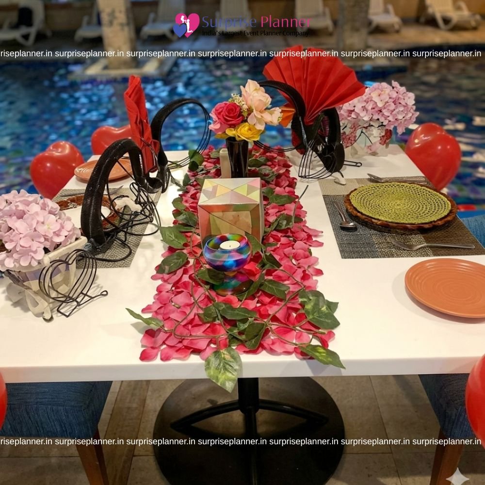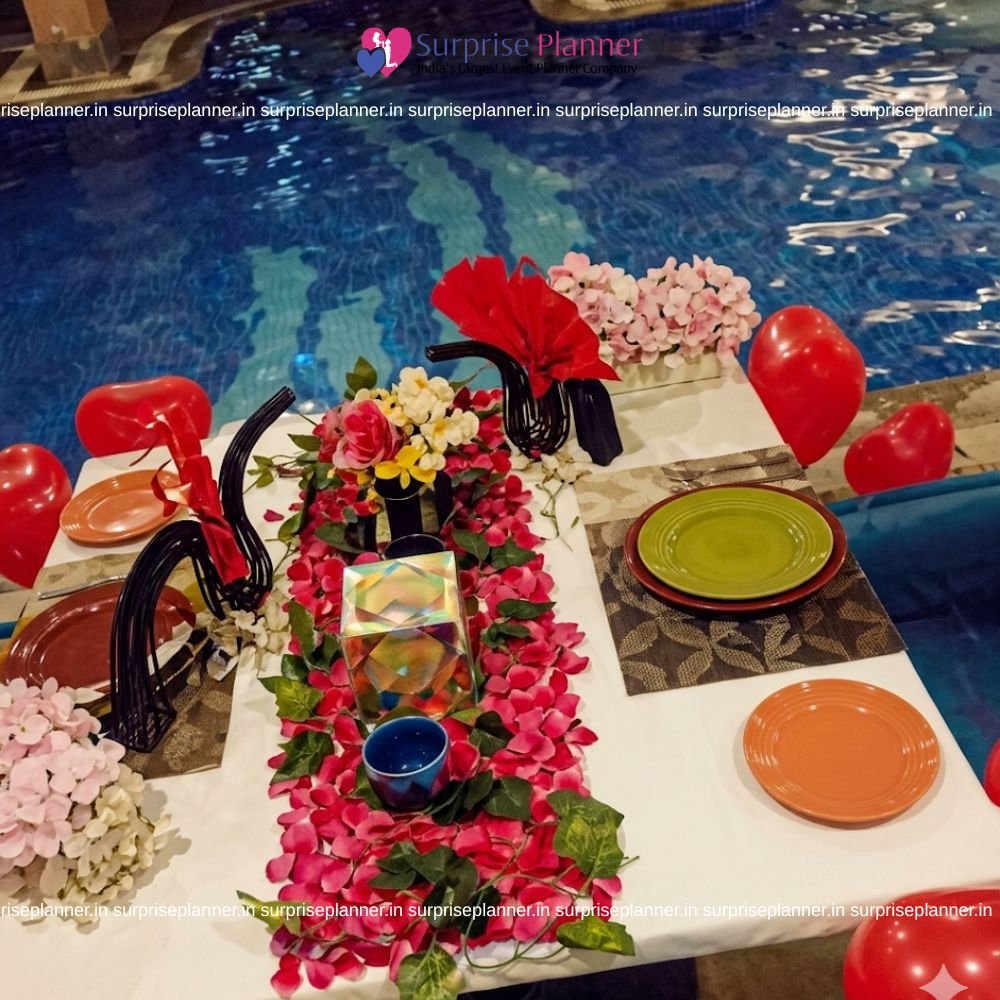Whether you're celebrating a special occasion or simply spending an evening together, this one-of-a-kind dining experience in Hyderabad offers an intimate and cozy atmosphere with a beautifully appointed poolside dining room illuminated by soft candlelight. Enjoy delicious food with your loved ones while surrounded by luxury and tranquil waters, creating the ideal blend of romance and luxury.