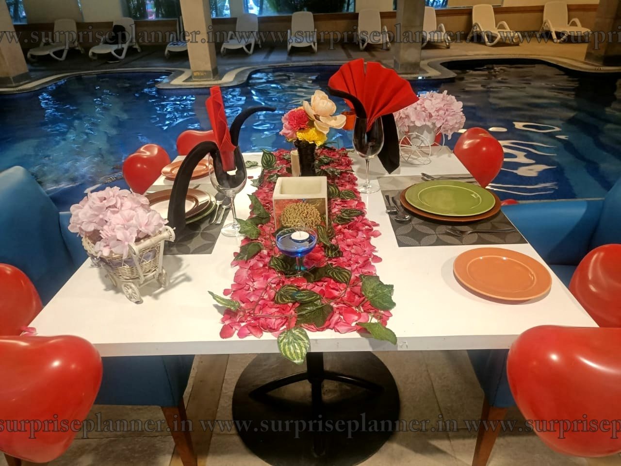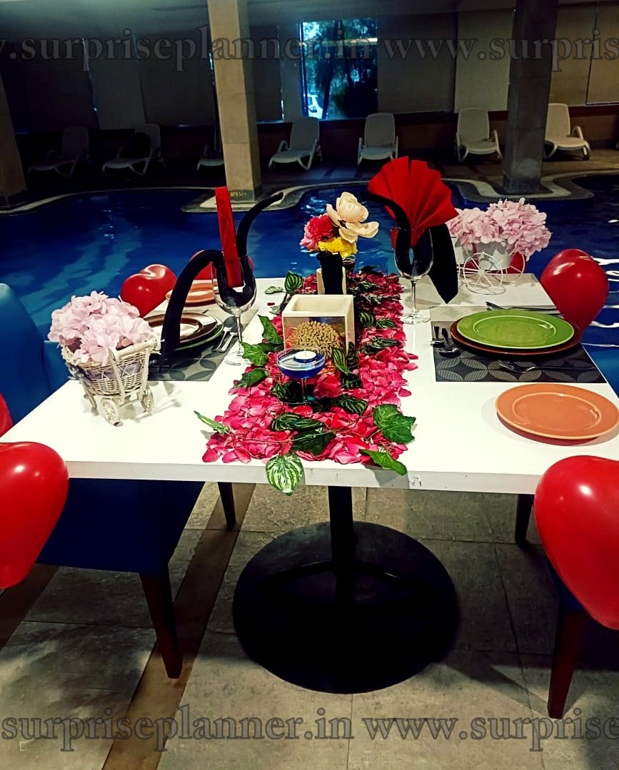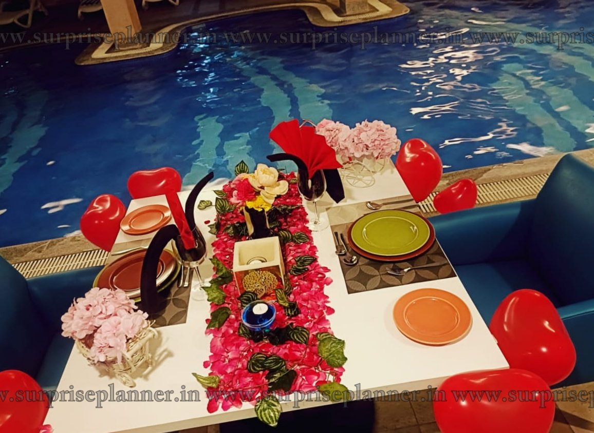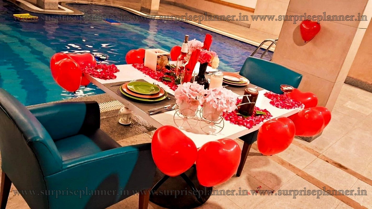 Whether you're celebrating a special occasion or simply spending an evening together, this one-of-a-kind dining experience in Hyderabad offers an intimate and cozy atmosphere with a beautifully appointed poolside dining room illuminated by soft candlelight. Enjoy delicious food with your loved ones while surrounded by luxury and tranquil waters, creating the ideal blend of romance and luxury.