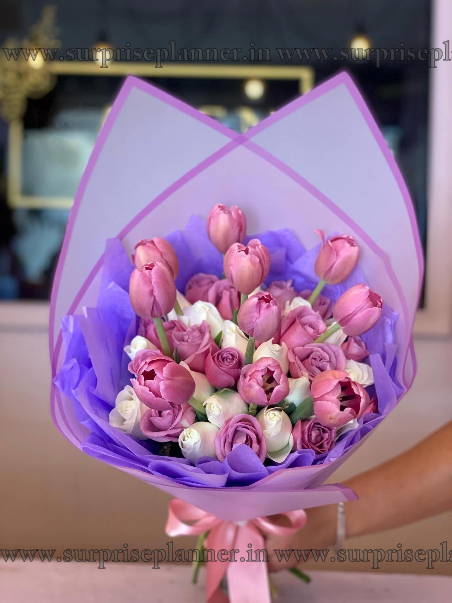 Presenting Our "Lavender Dream" Tulip & Rose Bouquet – Elegance in Every Petal!
