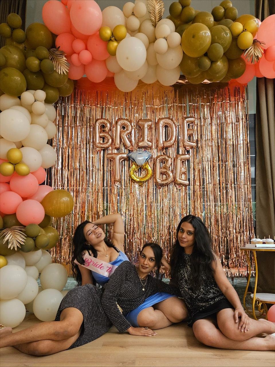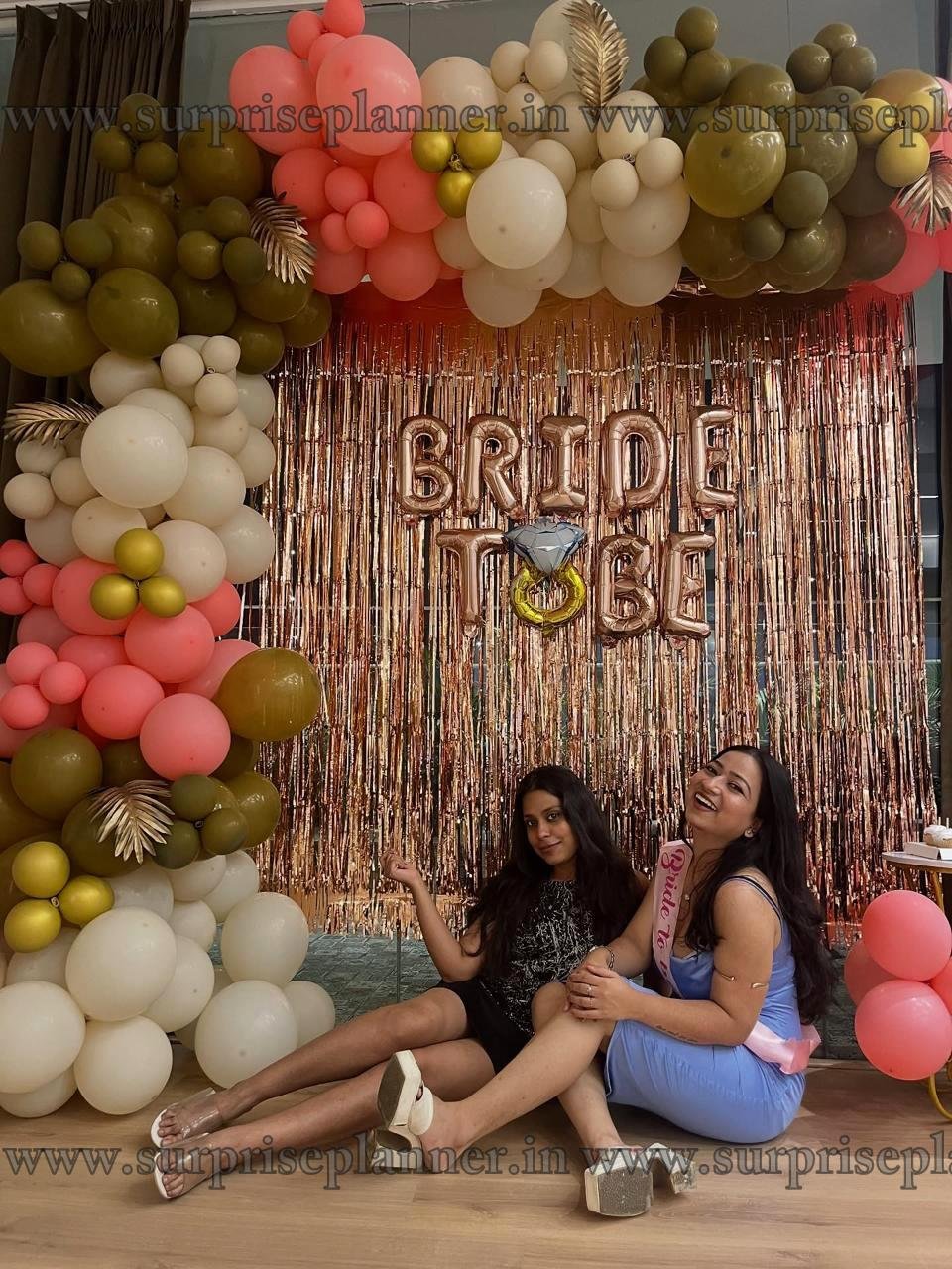 Celebrate your bestie's last bash before the big day with our luxury Bride-to-Be party setup! This stunning decoration features an elegant combination of peach, white, and olive-green balloons, golden shimmer backdrop, and rose gold “BRIDE TO BE” foil letters — perfect for creating Insta-worthy memories. Designed for intimate home parties, hotel rooms, or private event spaces, this setup brings joy, laughter, and glam to your bridal celebration. Our décor ensures the bride feels extra special with a setup that shines bright and sets the mood for an unforgettable...