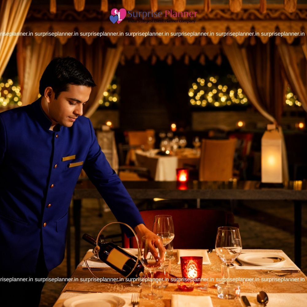 A dedicated attendant provides personalized service throughout the evening, adding to the premium experience. The soft ambient lighting and decorative backdrop create the perfect mood for anniversaries, proposals, birthdays, or romantic surprises.
