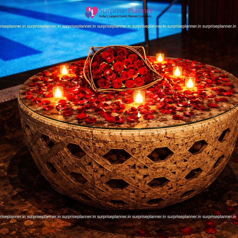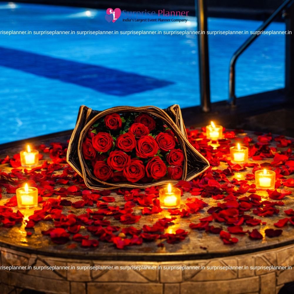 At Surprise Planner, we specialize in luxury candlelight dinner planning in Pune, offering customized décor themes, private cabana setups, romantic lighting, photography services, and complete surprise arrangements. Whether you want to celebrate a birthday, anniversary, or plan a romantic proposal, our team ensures every detail is perfectly designed to make your evening special.