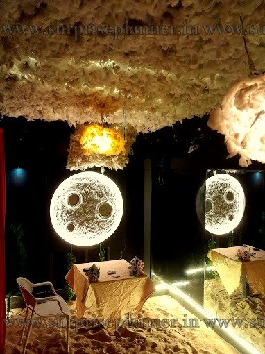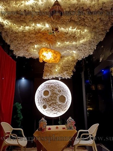 Transform your home into a lovely dream with our moon-themed décor installation in Ahmedabad. This gorgeous décor offers a glowing backdrop of the moon, flashing stars, and twinkling clouds, providing a lovely scene suitable for parties, weddings, or business events. The whole design is enhanced with moon-themed charms and decorations, as well as soft ambient lighting infused with enchantment. The system is ideal for both indoor and outdoor events, and it offers a fun and amazing experience to guests of all ages. Whether you're throwing a midnight party or a romantic evening, our moon-themed decorations will make your occasion absolutely special.