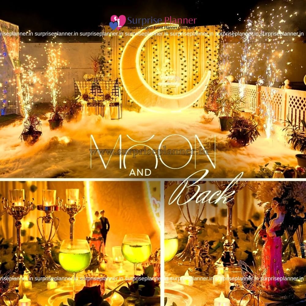 This setup is perfect for couples who want something grand, unique, and Instagram-worthy. With its magical moon backdrop and sparkling ambiance, it creates a once-in-a-lifetime memory that feels straight out of a romantic movie.