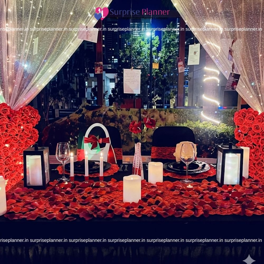 Enjoy a romantic evening at our Outdoor Cabana Candlelight Dinner in Hyderabad. This one-of-a-kind event takes place in a serene outdoor environment and includes a tastefully constructed cabana with soft lighting, candles, and fine décor. Enjoy exquisite dinner beneath the sky with a personalized menu. Whether you're celebrating a major event or simply enjoying a peaceful night out with your loved one, our dining experience provides the ideal balance of luxury and seclusion, as well as a relaxing ambiance and personalized service to ensure that you and your loved one have memories to remember.