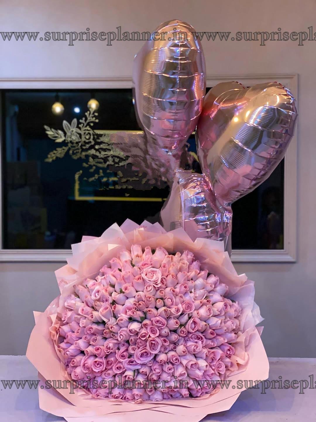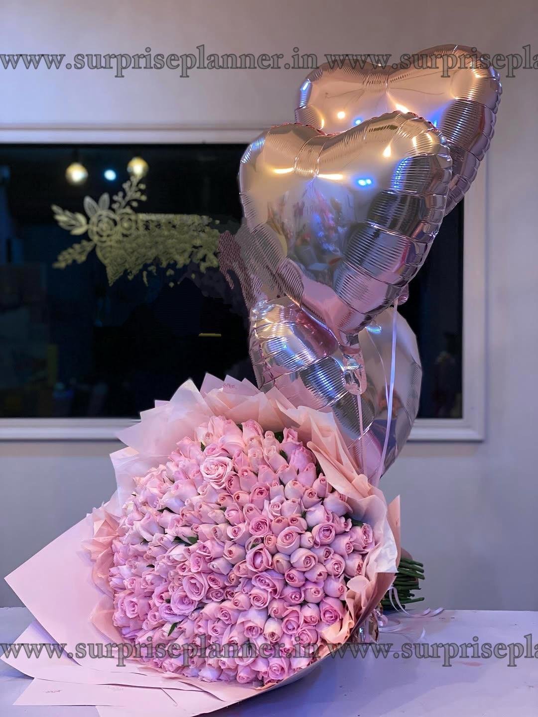 Presenting Our Grand "Pink Perfection" Rose Bouquet & Balloon Bundle – An Unforgettable Gesture of Love!