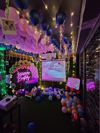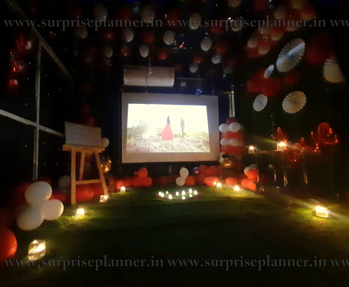 Create a memorable experience with our Private Movie Setup with Celebration Package in Ahmedabad. This system transforms a standard movie night into a stunning, personalized event, making it ideal for private groups, anniversaries, birthdays, or special date evenings. Enjoy a private screening of your favorite movie on the large screen, complete with superb sound and comfy seats. Our packages include magnificent design, tailored lighting, and a calm atmosphere to complement your theme. We provide dessert, beverages, and cake alternatives to further elevate the celebration. Capture any moment with our photography add-on. It is ideal to make memories with family, friends, or a particular someone.