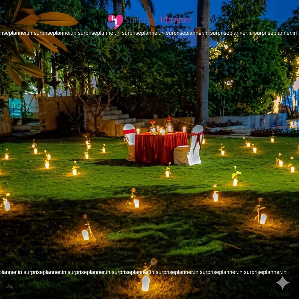 Set in a peaceful open-air ambiance, this dinner features a romantic setup with candlelight, elegant décor, and the perfect mood lighting. From personalized birthday surprises to intimate anniversary celebrations and breathtaking proposal setups, we ensure every detail adds to your magical evening.