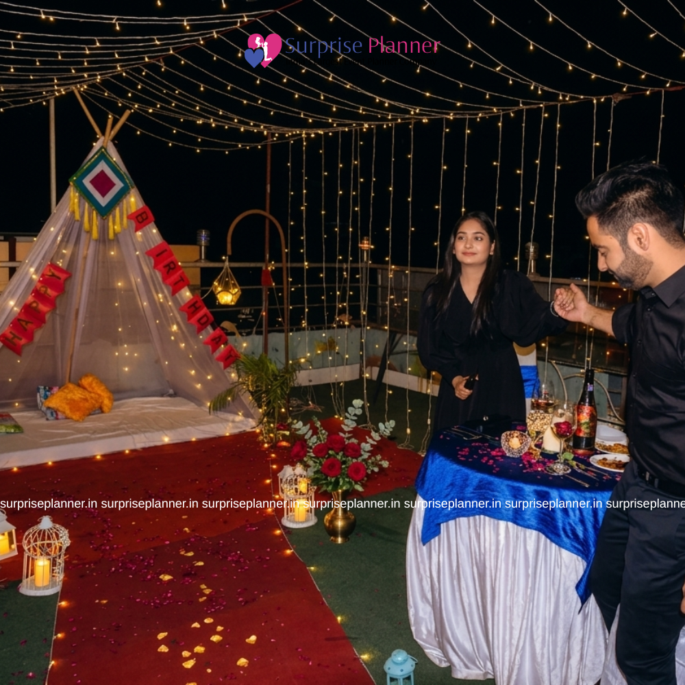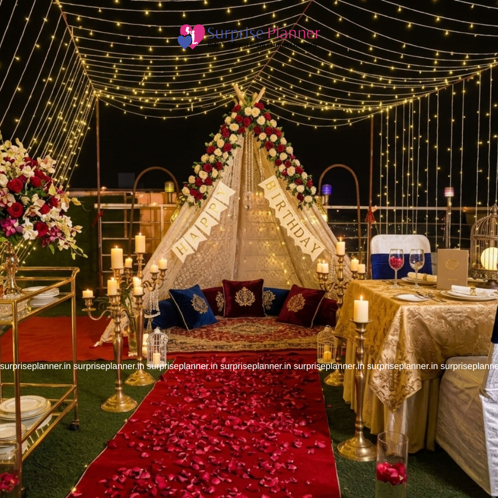 Whether you're celebrating a special occasion or simply seeking a romantic getaway, our Rooftop Cabana Setup is the epitome of opulence and intimacy. Cherish quality time with your partner as you create lasting memories amidst the stars. Unwind, rejuvenate, and ignite your passion with this unparalleled experience, where love and luxury converge in perfect harmony.