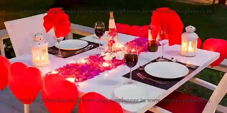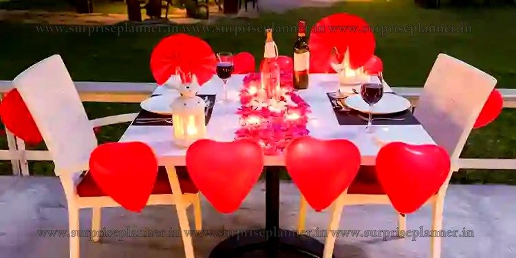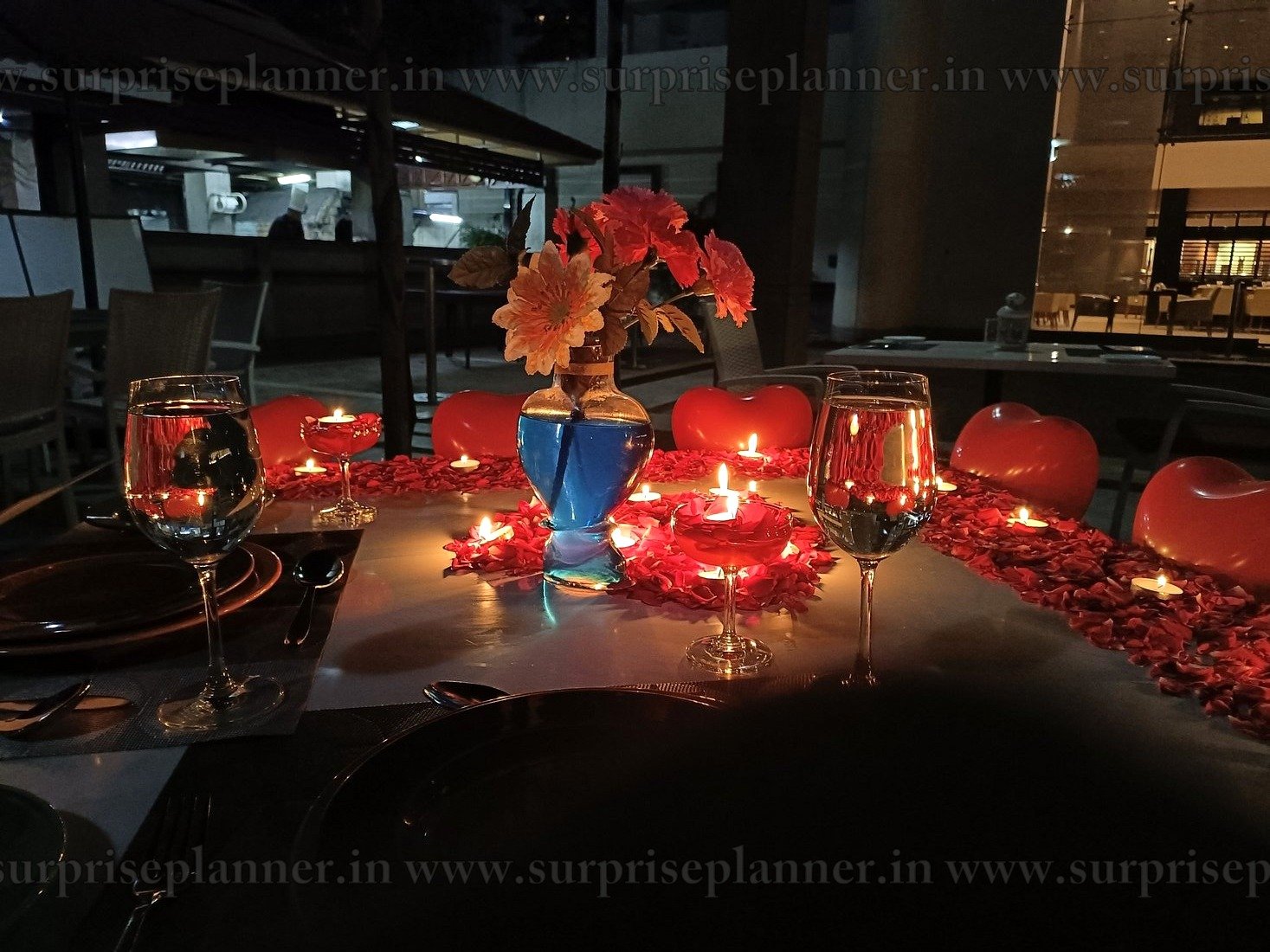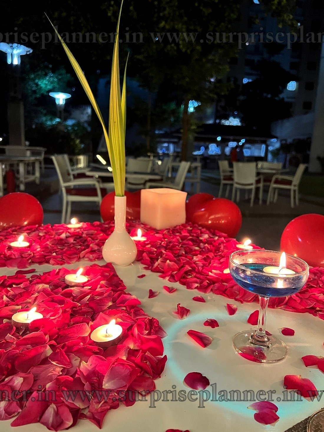 Enjoy a Romantic Garden Candlelight Dinner in Hyderabad, located in a peaceful and verdant garden environment. This intimate dining experience comprises tastefully placed tables surrounded by gentle lighting, fresh flowers, and burning tea candles, creating a dream-like environment. Enjoy exquisite meals created by famous chefs and suited to your preferences, accompanied by lovely music. Whether it's an anniversary, a special event, or simply a romantic evening, this arrangement provides a central location in Hyderabad as well as a sumptuous hideaway, making your night absolutely unique.