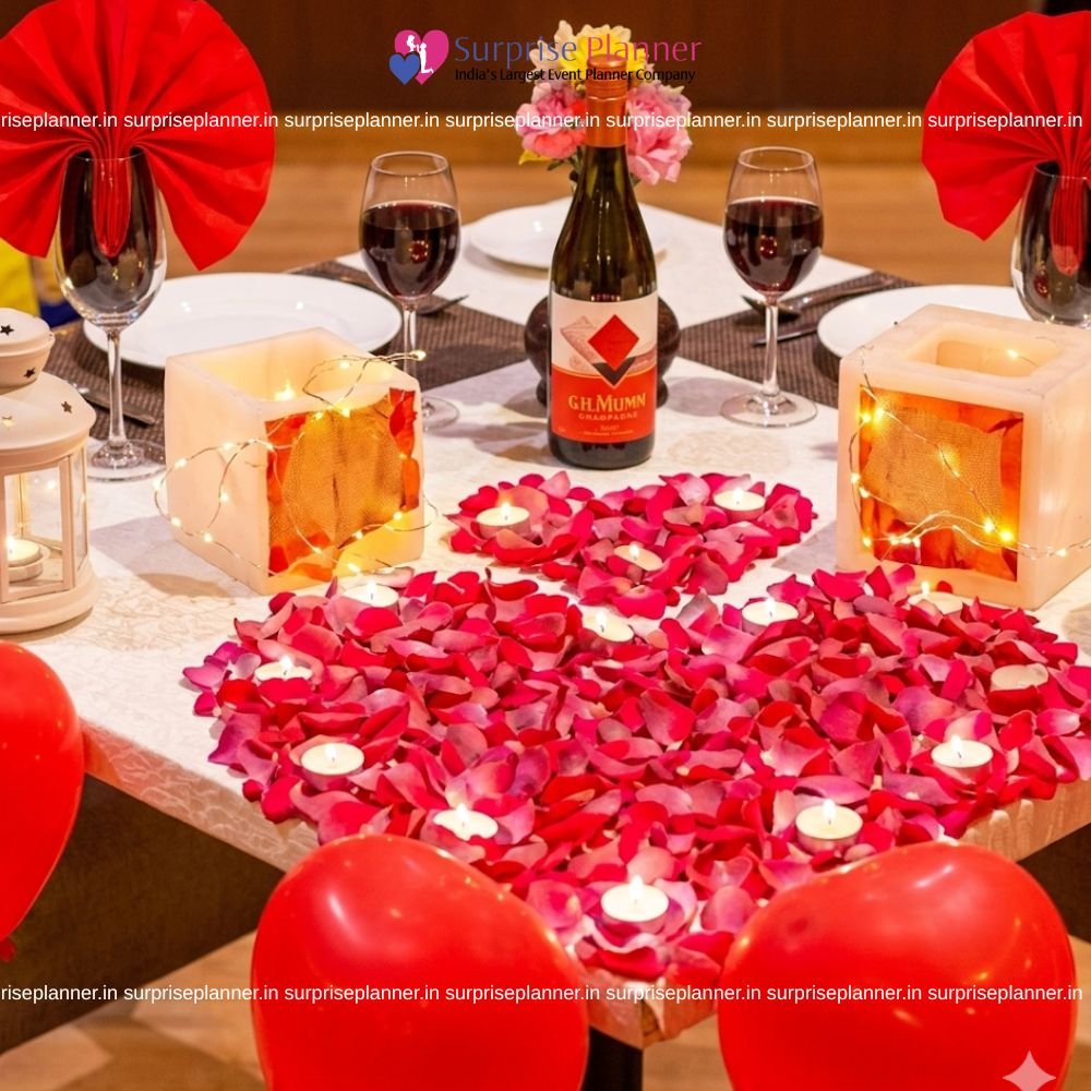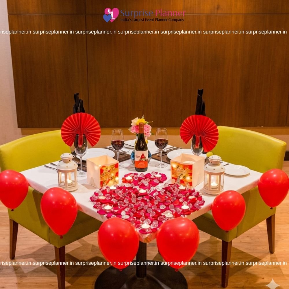 Enjoy a Romantic Indoor Lunch or Dinner in Hyderabad, located in a peaceful and verdant garden environment. This intimate dining experience comprises tastefully placed tables surrounded by gentle lighting, fresh flowers, and burning tea candles, creating a dream-like environment. Enjoy exquisite meals created by famous chefs and suited to your preferences, accompanied by lovely music. Whether it's an anniversary, a special event, or simply a romantic evening, this arrangement provides a central location in Hyderabad as well as a sumptuous hideaway, making your night absolutely unique.