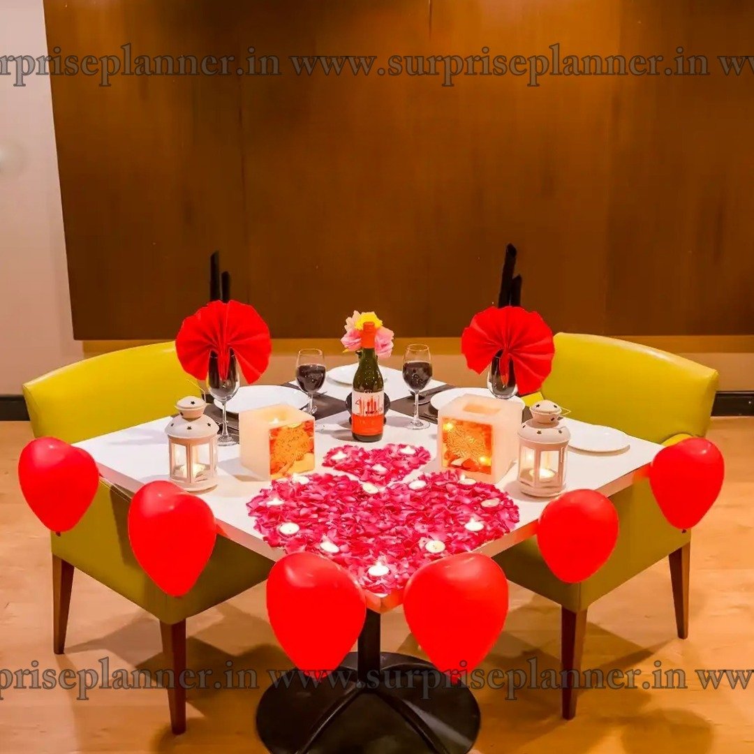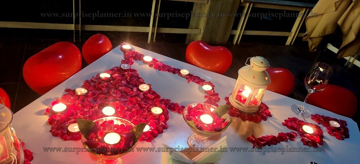 Enjoy a Romantic Indoor Lunch or Dinner in Hyderabad, located in a peaceful and verdant garden environment. This intimate dining experience comprises tastefully placed tables surrounded by gentle lighting, fresh flowers, and burning tea candles, creating a dream-like environment. Enjoy exquisite meals created by famous chefs and suited to your preferences, accompanied by lovely music. Whether it's an anniversary, a special event, or simply a romantic evening, this arrangement provides a central location in Hyderabad as well as a sumptuous hideaway, making your night absolutely unique.