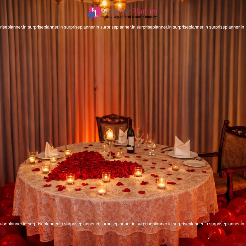 Couples can indulge in a specially curated multi-course dinner prepared by expert chefs, with both vegetarian and non-vegetarian options available. The intimate setting ensures uninterrupted moments, while our professional team manages everything discreetly for a flawless experience.