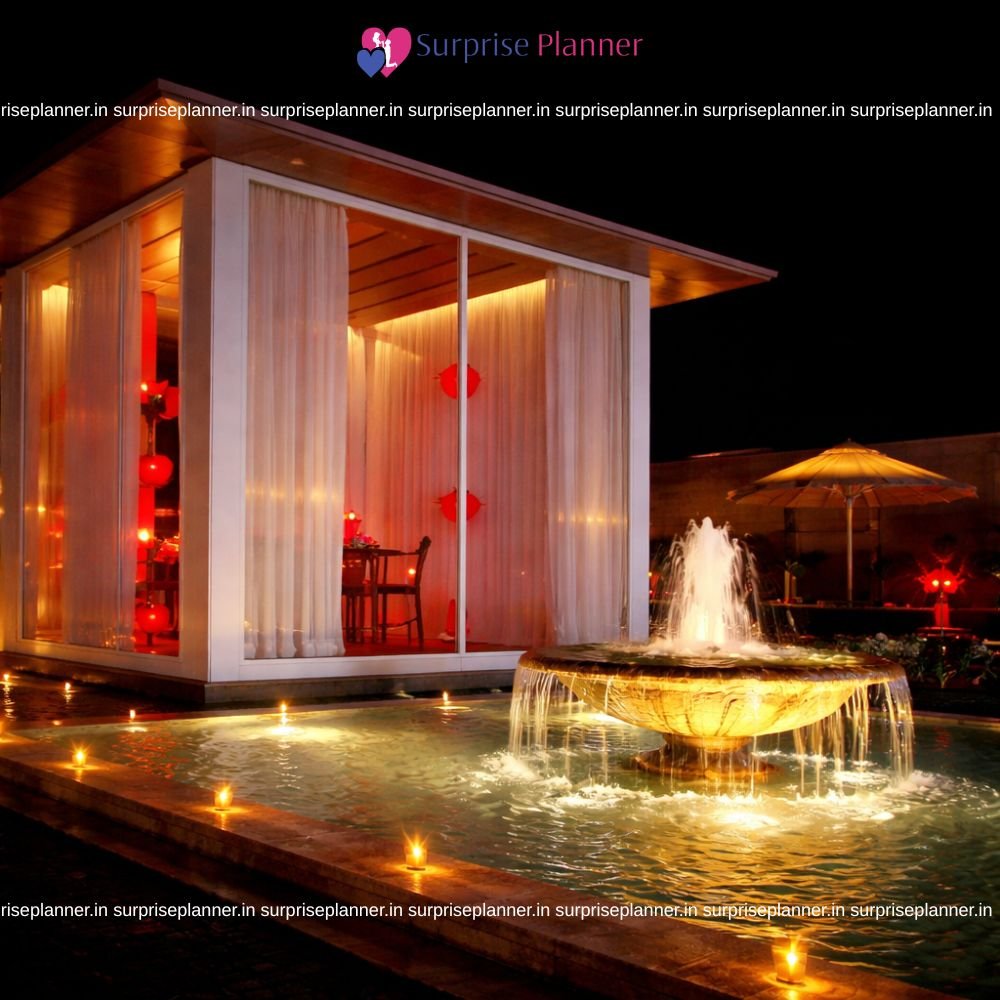 Experience unmatched elegance with our exclusive glasshouse fountain candlelight dinner at Hotel Umrao. Designed for couples who seek complete privacy and royal ambiance, this premium romantic package offers a dreamy setting beside a beautifully illuminated fountain.
