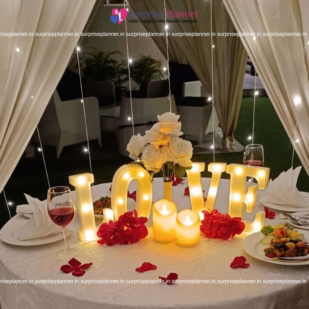 After a delightful dinner, the experience continues with a luxurious room stay. The bedroom is tastefully decorated with rose petals, towel art, and subtle lighting to create a romantic atmosphere. The comfortable bedding, premium interiors, and peaceful environment make it an ideal escape for couples celebrating birthdays, anniversaries, or proposals.