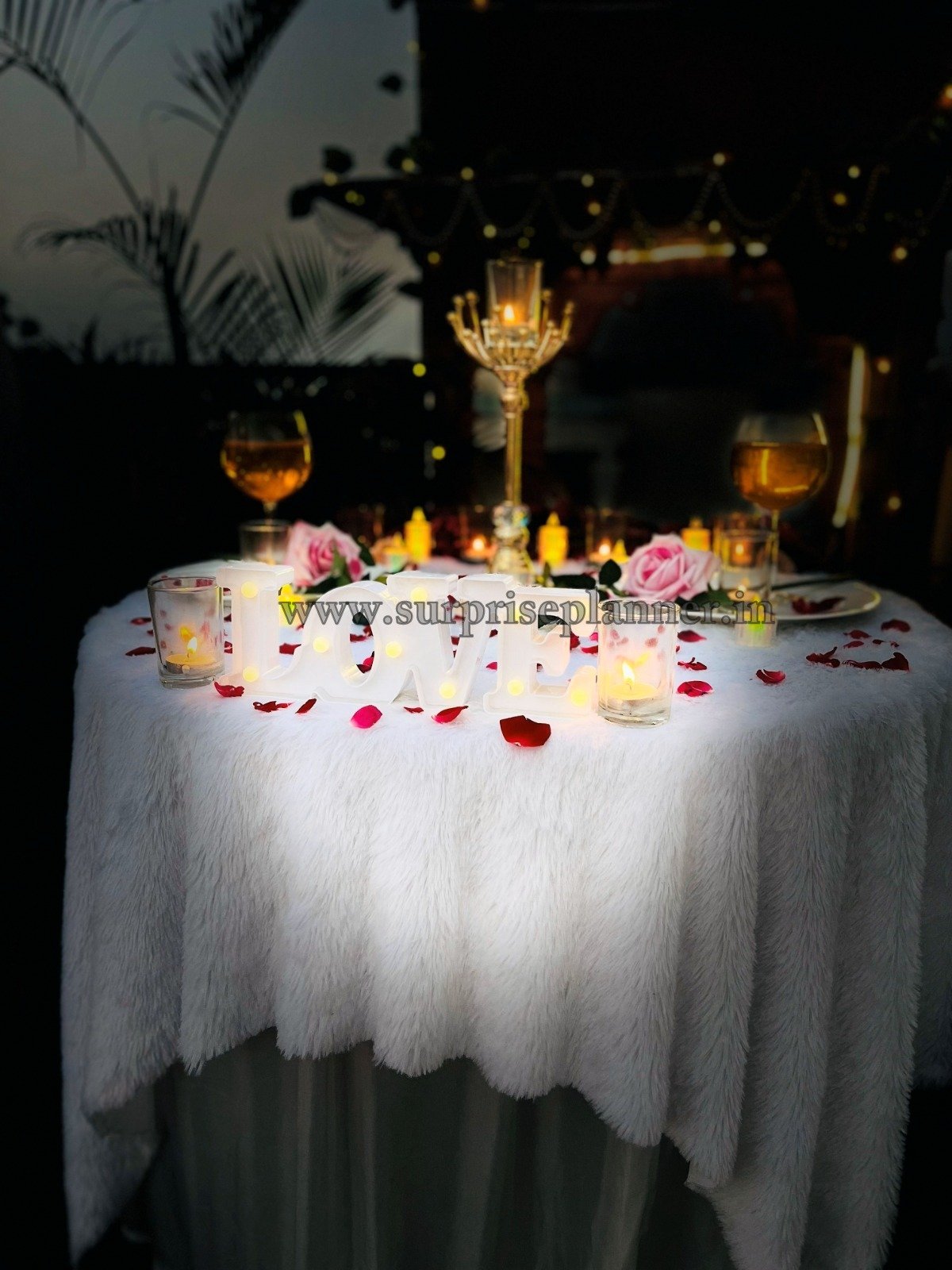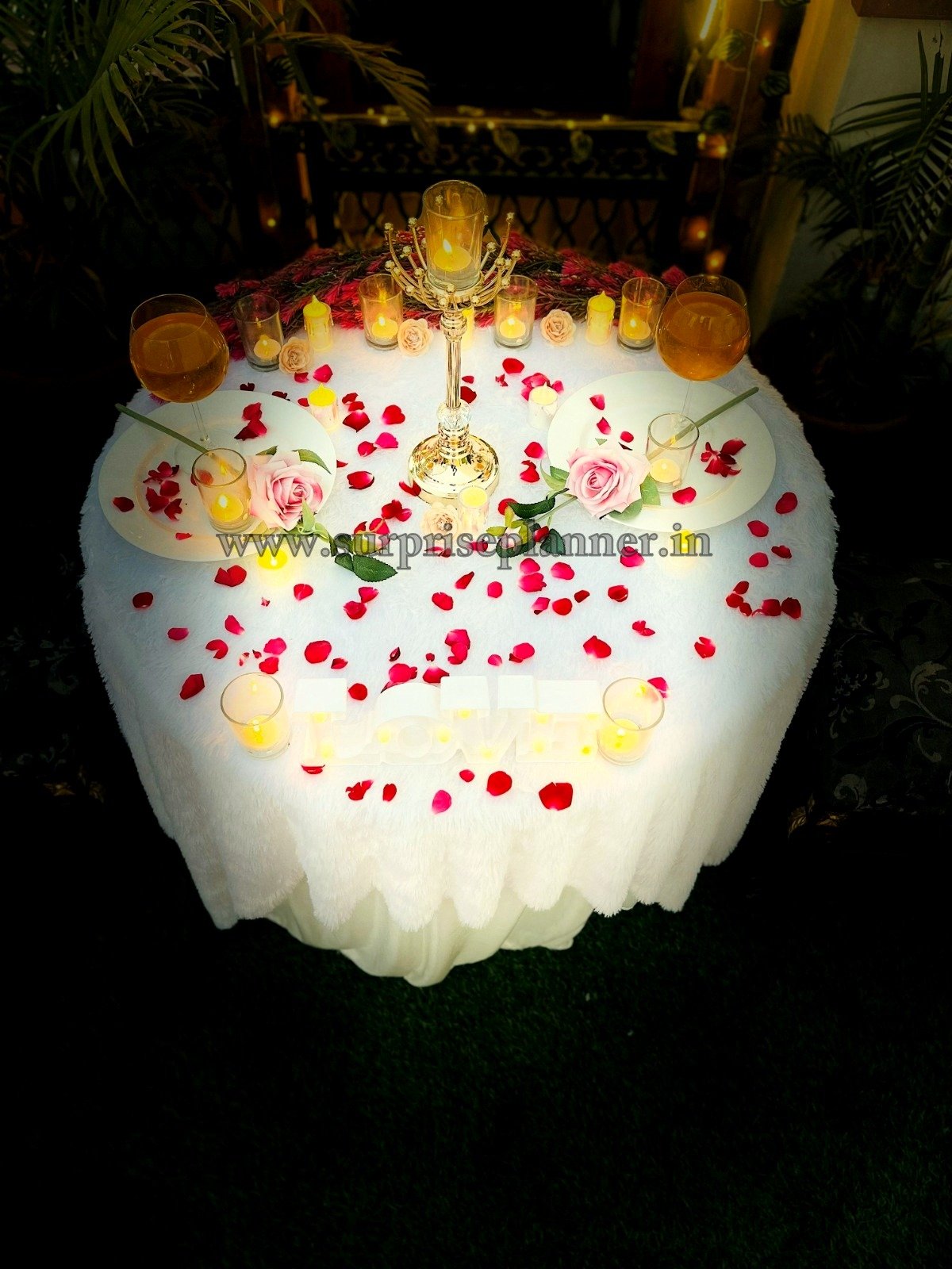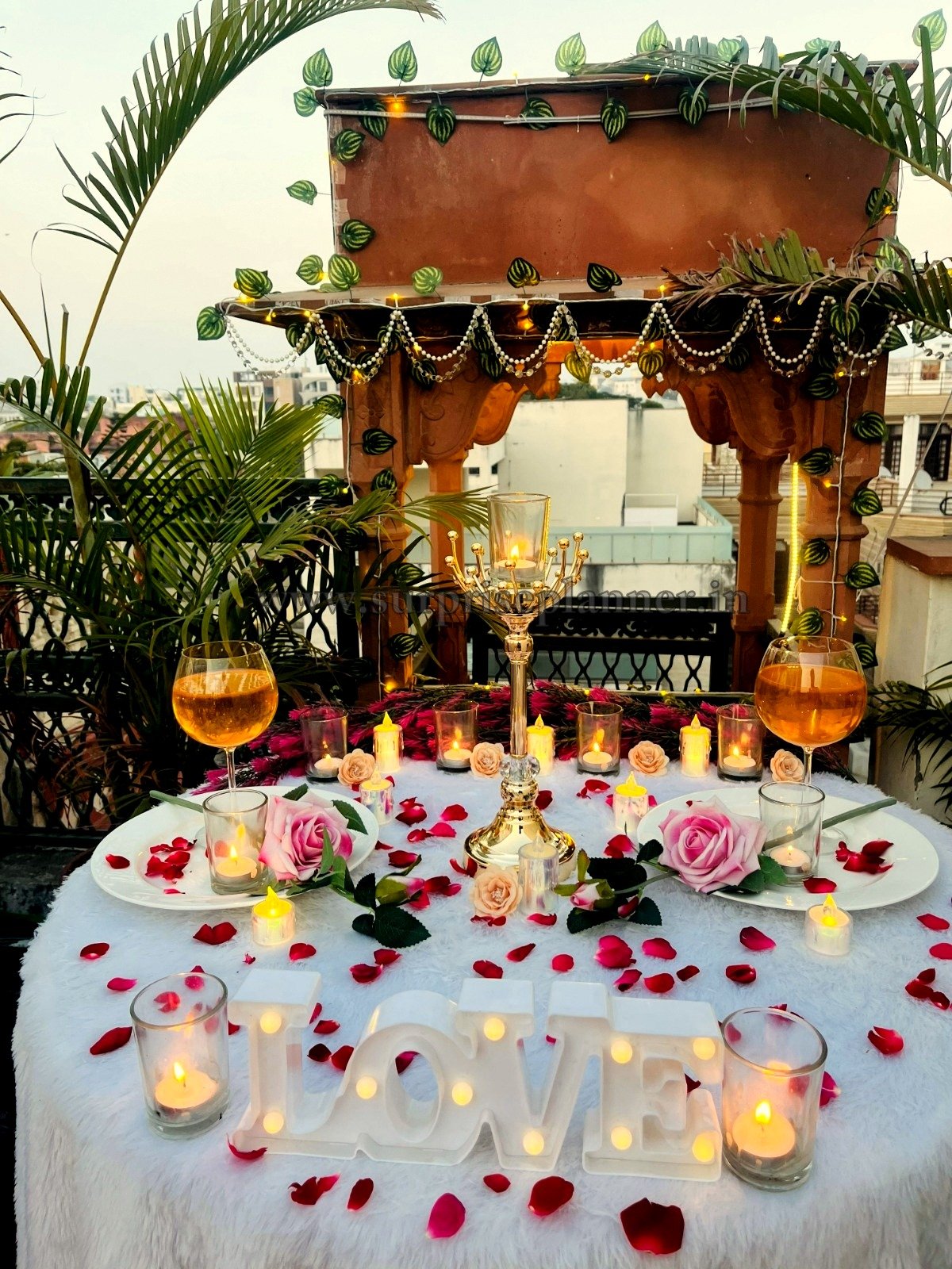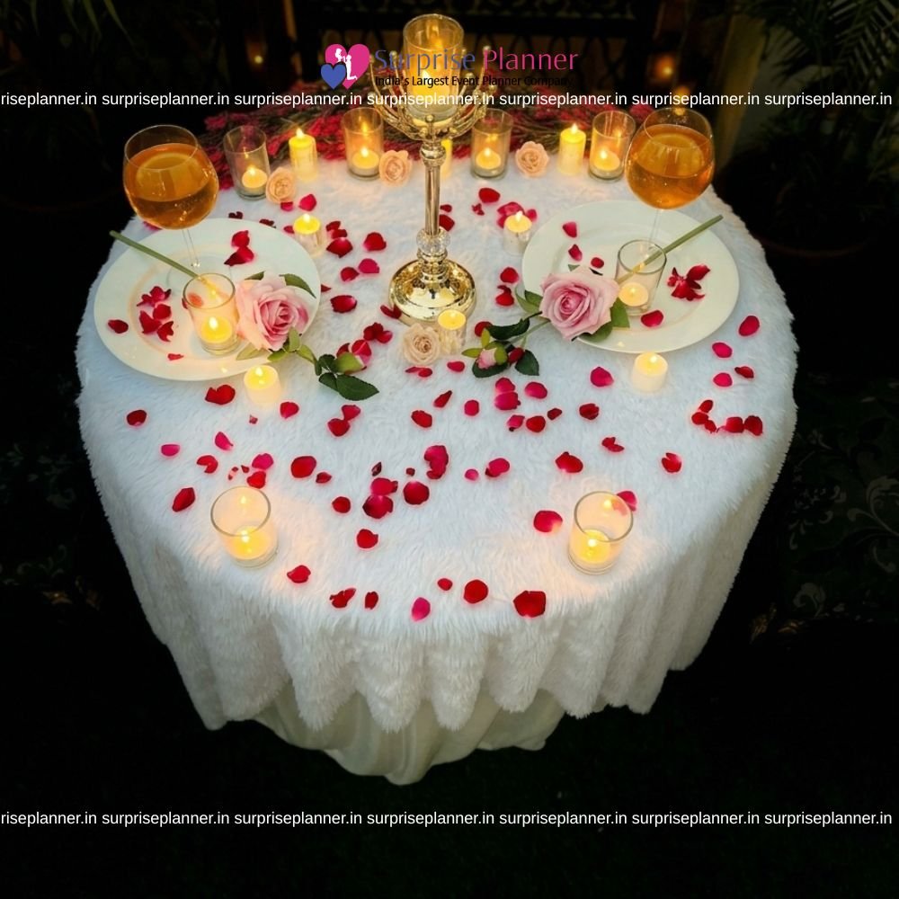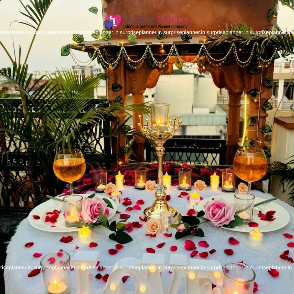 Ideal for couples who prefer privacy with sophistication, this rooftop romantic décor offers a picture-perfect backdrop for capturing beautiful memories. Whether it’s a “Will You Marry Me” surprise or a candlelight dinner date, Surprise Planner ensures every detail reflects love, luxury, and emotion.