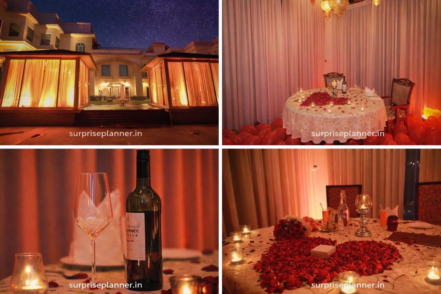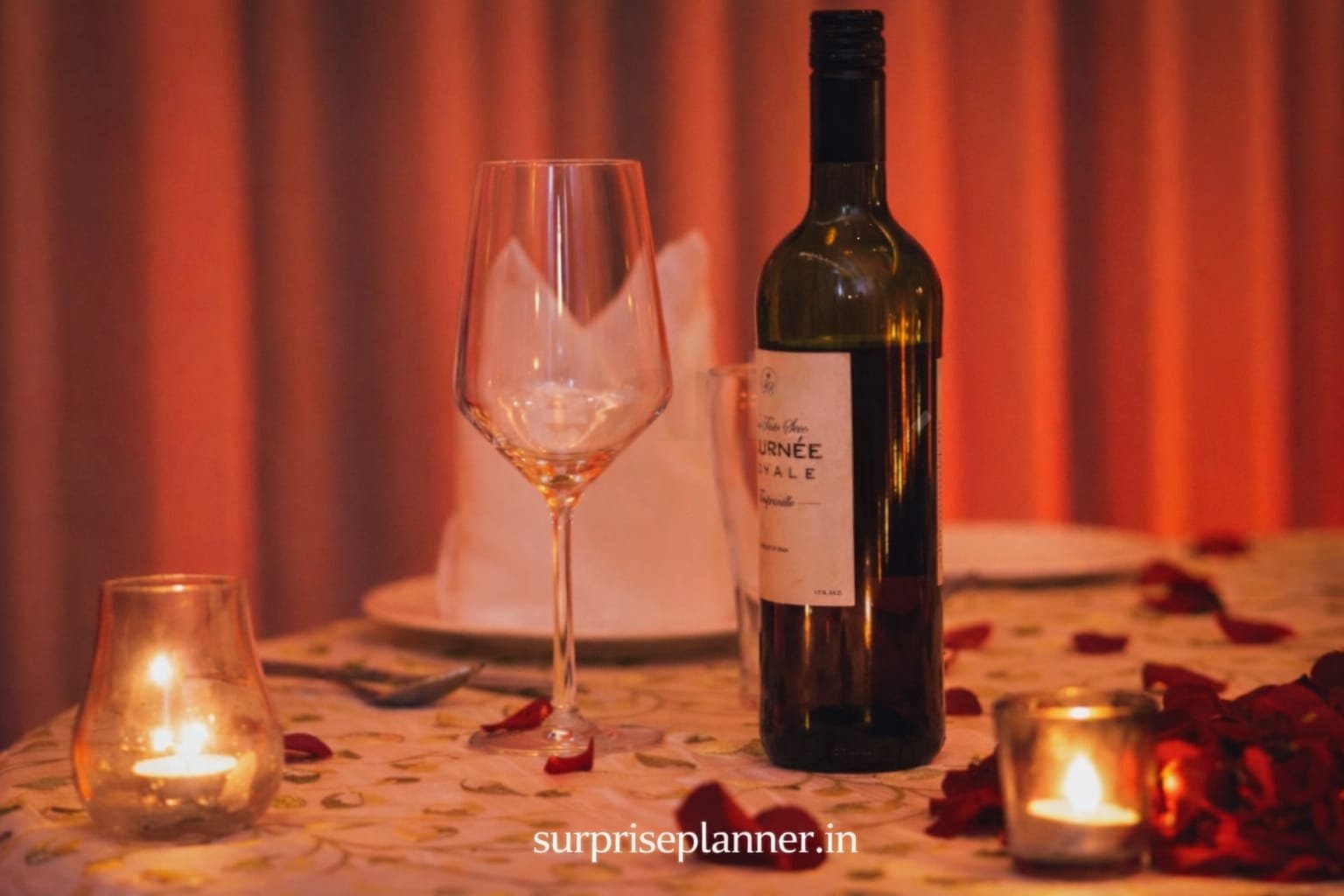 A premium wine setup, romantic table arrangement, and cozy seating add a touch of luxury, while the serene surroundings and intimate ambiance make it ideal for couples looking to spend quality time together. Whether it’s your first Valentine together or a celebration of years of love, this setup promises a magical, picture-perfect evening filled with romance, elegance, and cherished memories.