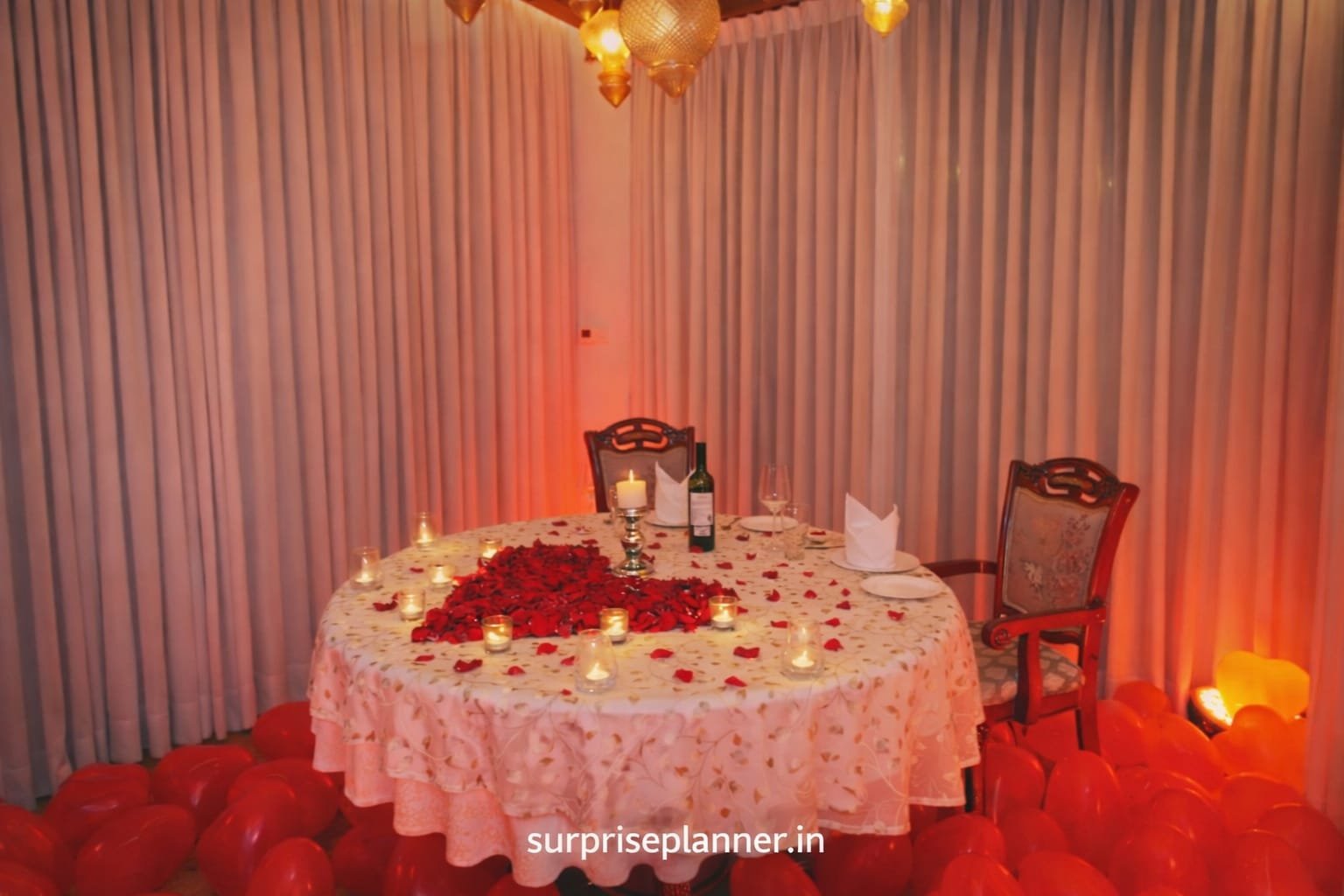 Celebrate love in its most elegant form with our exclusive Valentine’s Day Private Candlelight Dinner setup. Designed to create an unforgettable romantic evening, this experience features a beautifully curated private dining space illuminated with warm ambient lighting, soft drapes, and glowing candles. The table is artistically adorned with fresh rose petals, candles, fine table linen, and elegant décor elements that set the perfect mood for love.