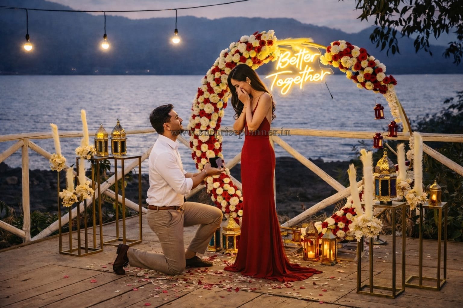 If you’re looking for a romantic proposal planner in Lonavala who can create a picture-perfect sunset moment, the “Better Together” Lakeside Proposal Experience is designed to make your partner say an unforgettable “YES”.