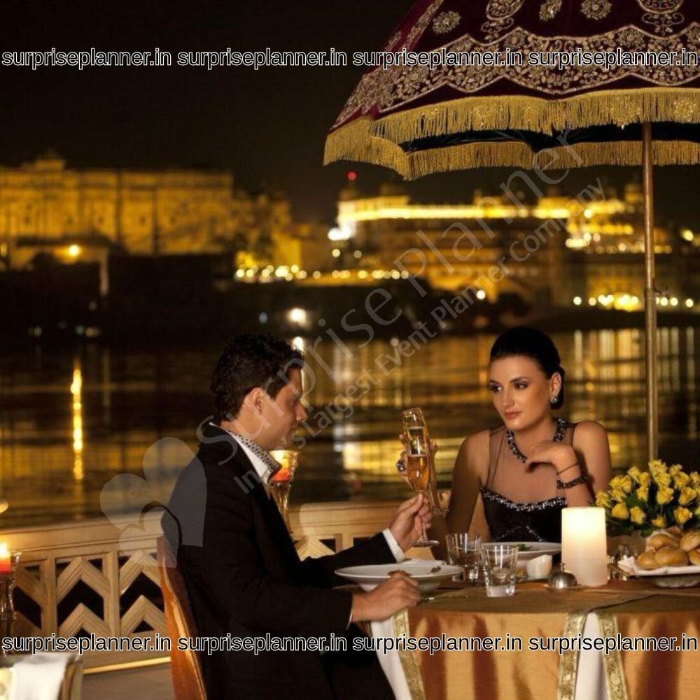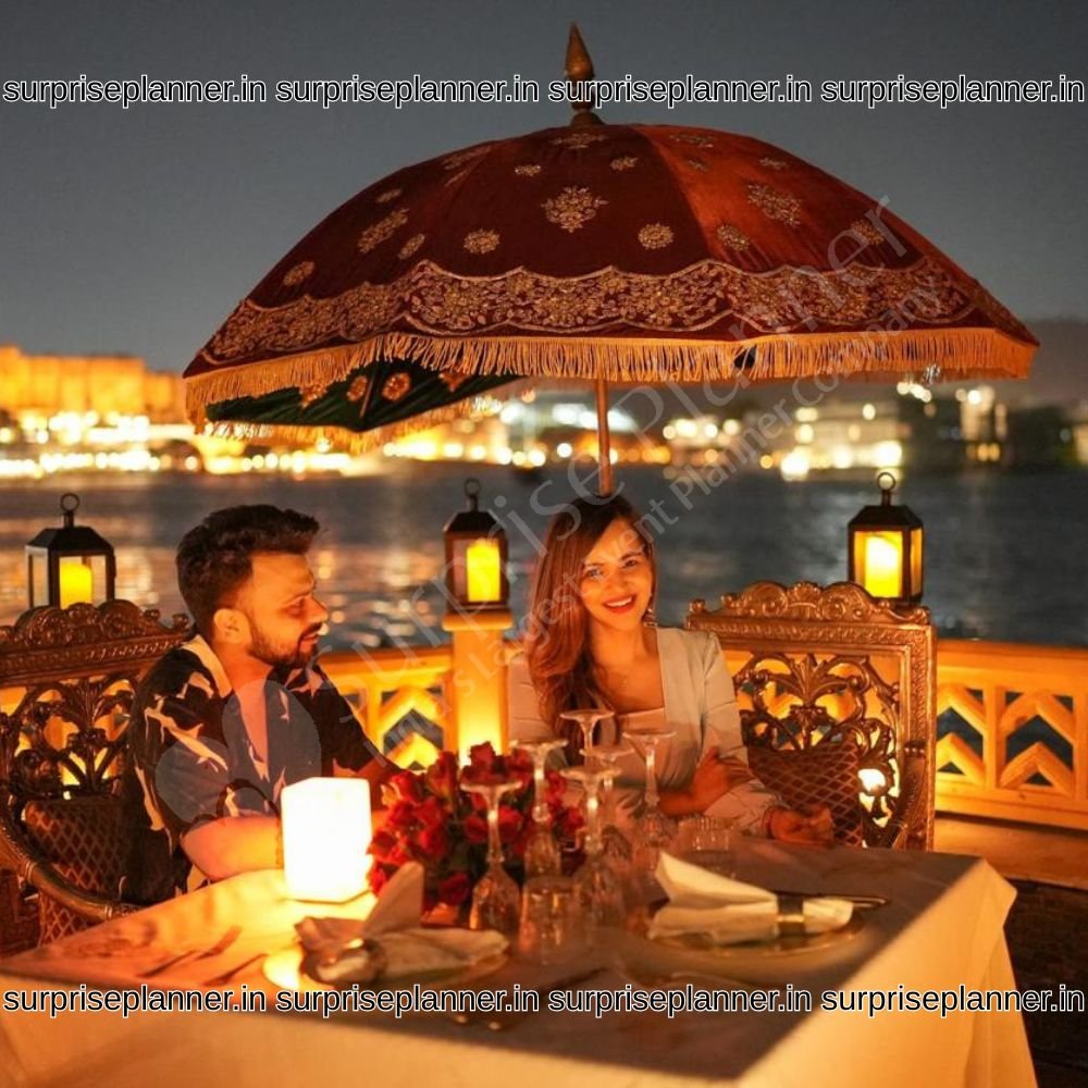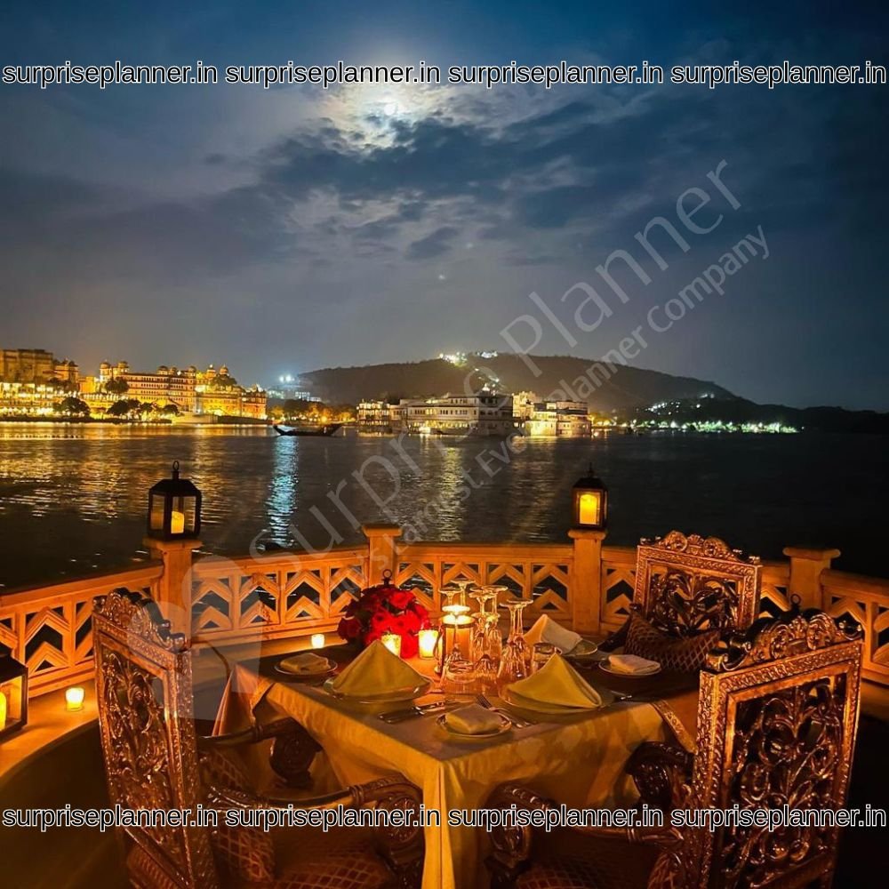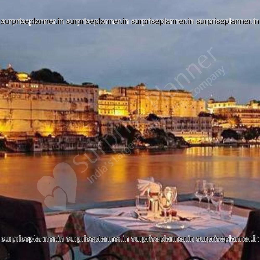 Experience an unforgettable romantic candlelight dinner by the serene lakes of Udaipur — the city of love and royalty. Set against the breathtaking backdrop of Lake Pichola or Fateh Sagar Lake, this dreamy setup is curated exclusively by Surprise Planner to make your evening magical.