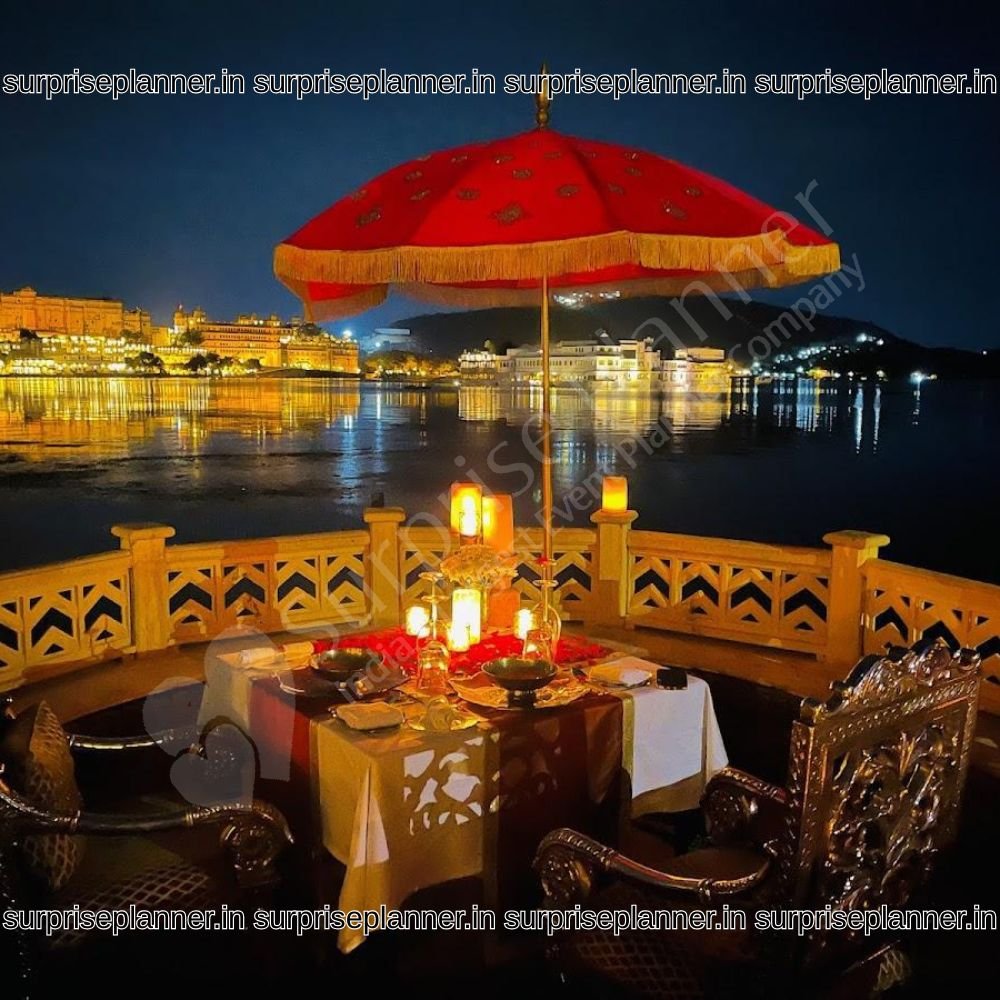 Indulge in a lavish multi-course dinner prepared by top chefs while you gaze at the shimmering reflections of Udaipur’s palaces and the calm waters. The soothing ambience, gentle breeze, and soft music complete your perfect romantic escape.