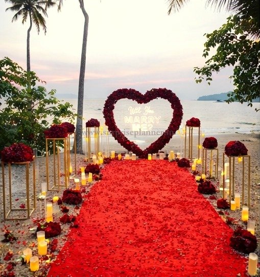 At Surprise Planner, we specialize in luxury proposal planning in Goa, offering customized décor concepts, private beach setups, professional photography, drone shoots, musicians, and complete surprise planning services. Whether you dream of a sunset beach proposal or a private romantic celebration by the sea, we ensure every detail is flawlessly designed.